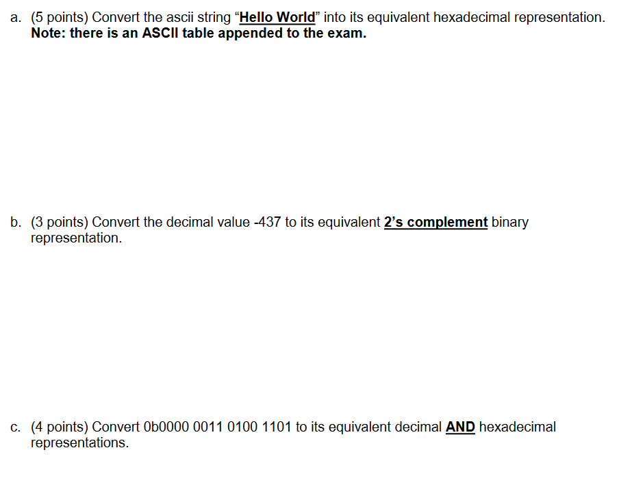 Solved a. (5 points) Convert the ascii string "Hello World” | Chegg.com