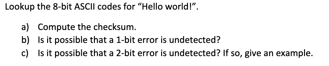 Solved Lookup the 8-bit ASCll codes for "Hello world!". a) | Chegg.com