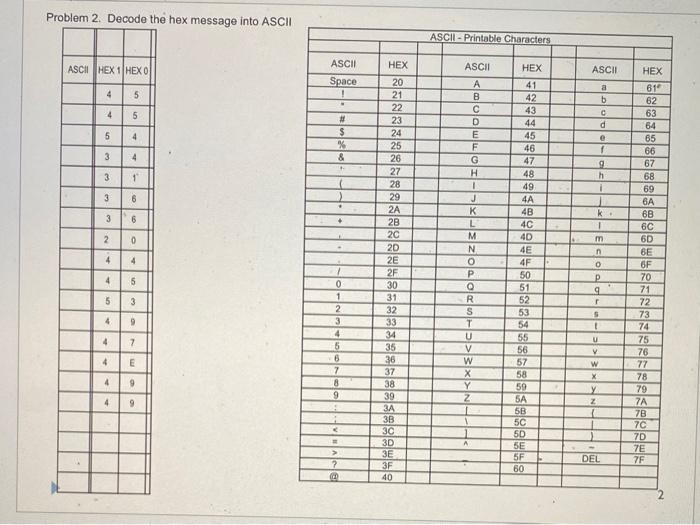 Problem 2. Decode the hex message into ASCII | Chegg.com