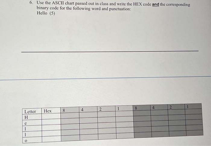Solved 6. Use the ASCII chart passed out in class and write | Chegg.com