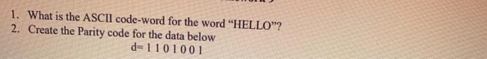 Solved 1. What is the ASCII code word for the word "HELLO"? | Chegg.com