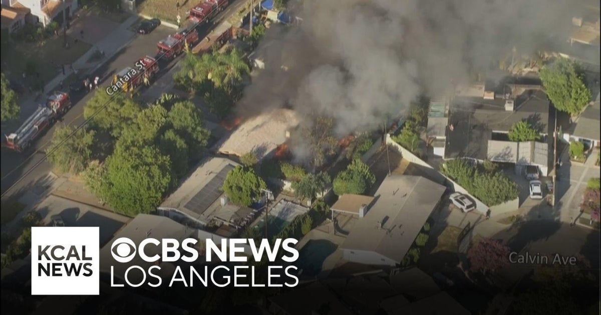 Firefighters try to extinguish blaze inside Reseda home - CBS Los Angeles