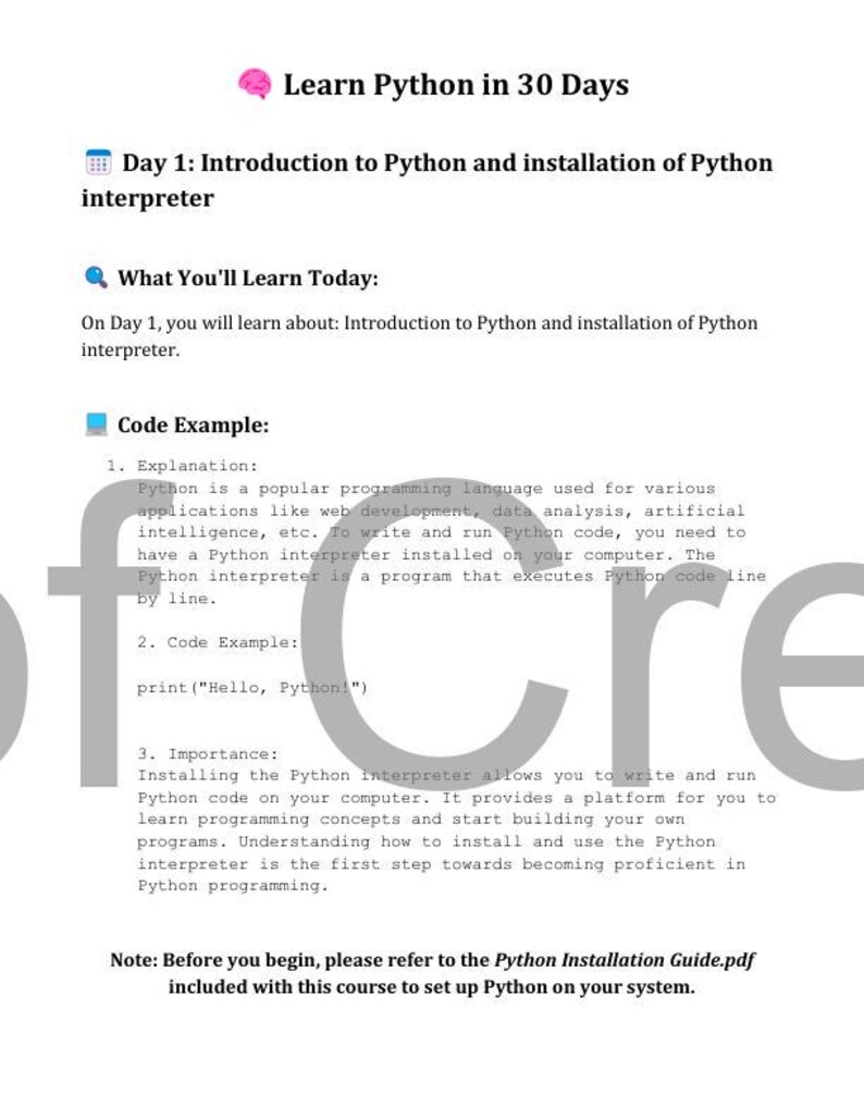 Learn Python in 30 Days - Printable Ebook With Daily Lessons & Code ...