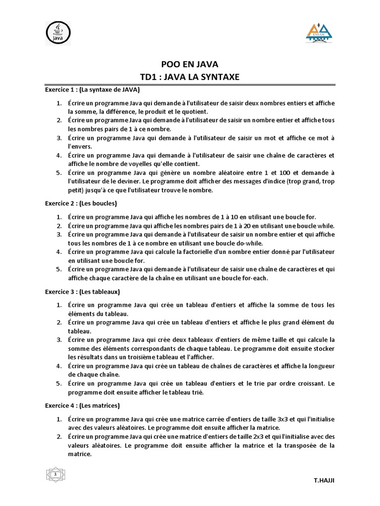 Cahier d exercice Java - very important courses - Travaux Pratiques de ...