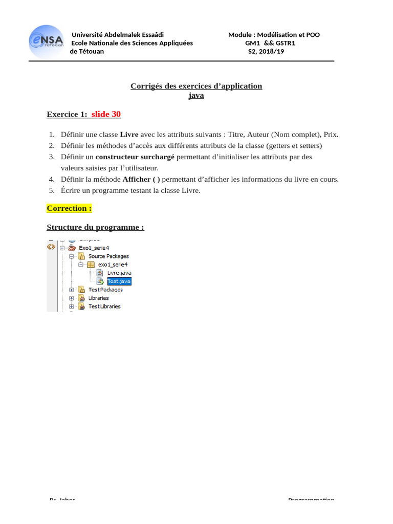 Exercices Corrigés POO en Java | PDF | Classe (informatique ...