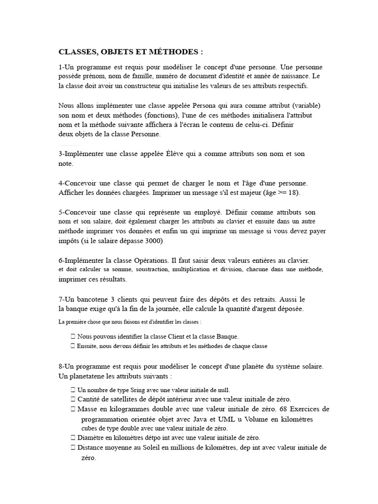 Exercices POO Java : Semaine 2 | PDF | Java (Langage de programmation ...