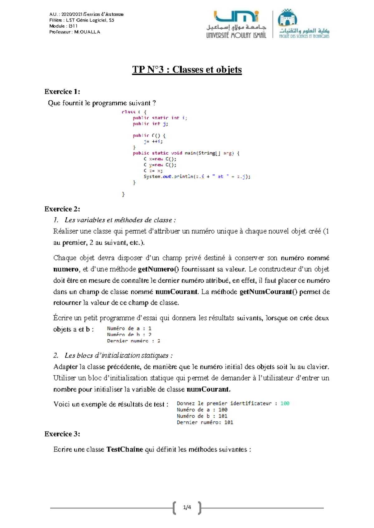 (PDF) Examen : Programmation orientée objet en Java Exercice 1 [ 4 pts ...