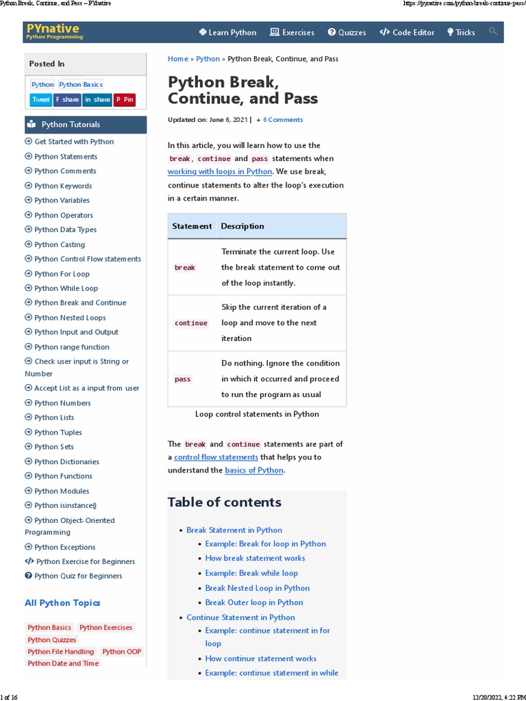 Python Break, Continue, and Pass - PYnative | PDF | Control Flow ...