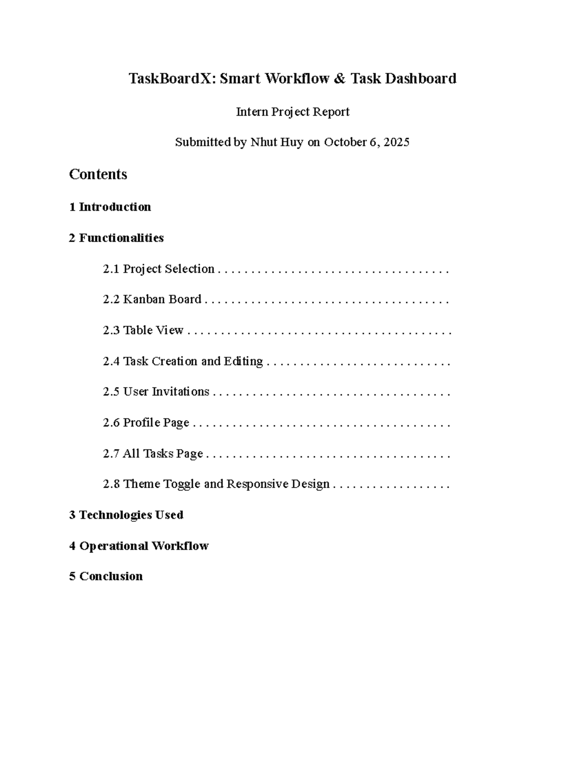 TaskBoardX: Smart Workflow Management Intern Project Report - Studocu