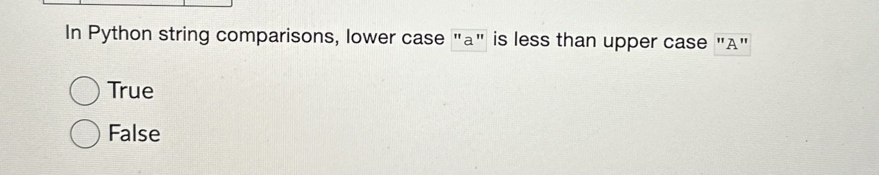 Solved In Python string comparisons, lower case "a" ο»Ώis less | Chegg.com