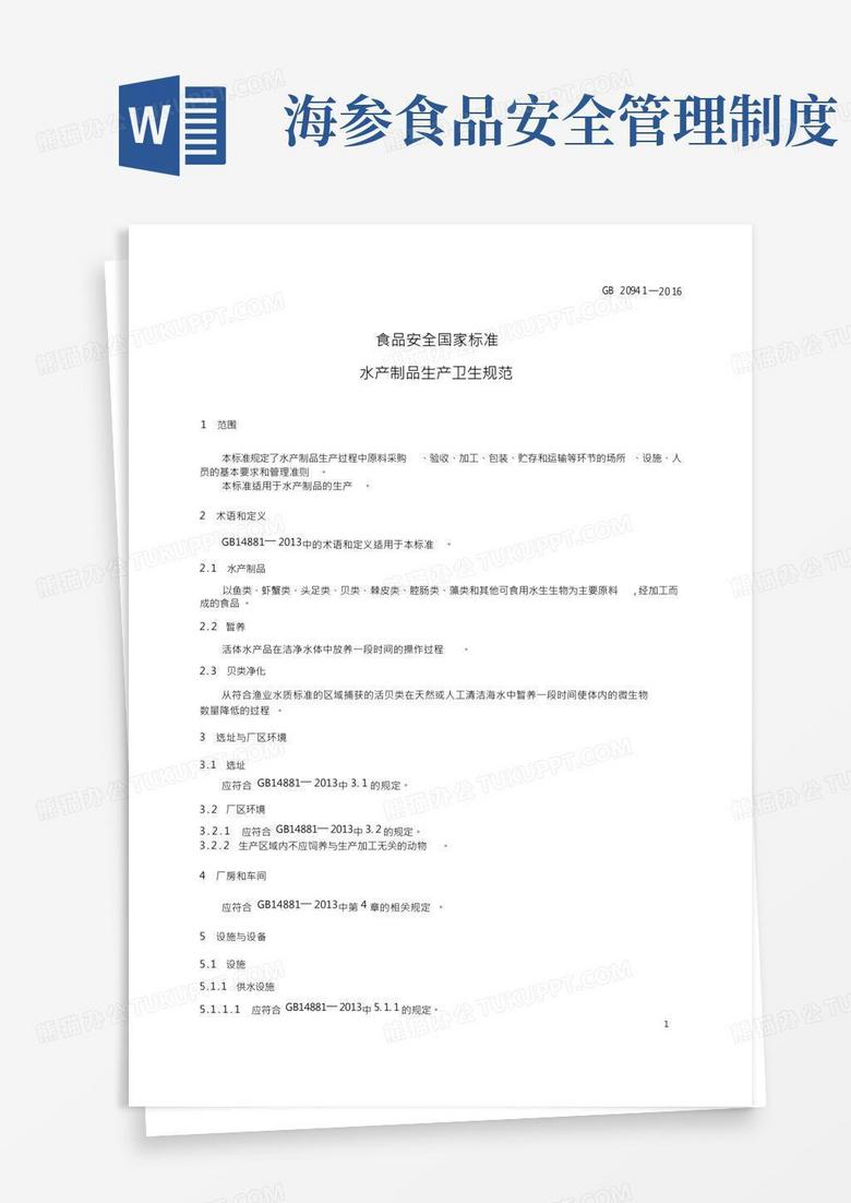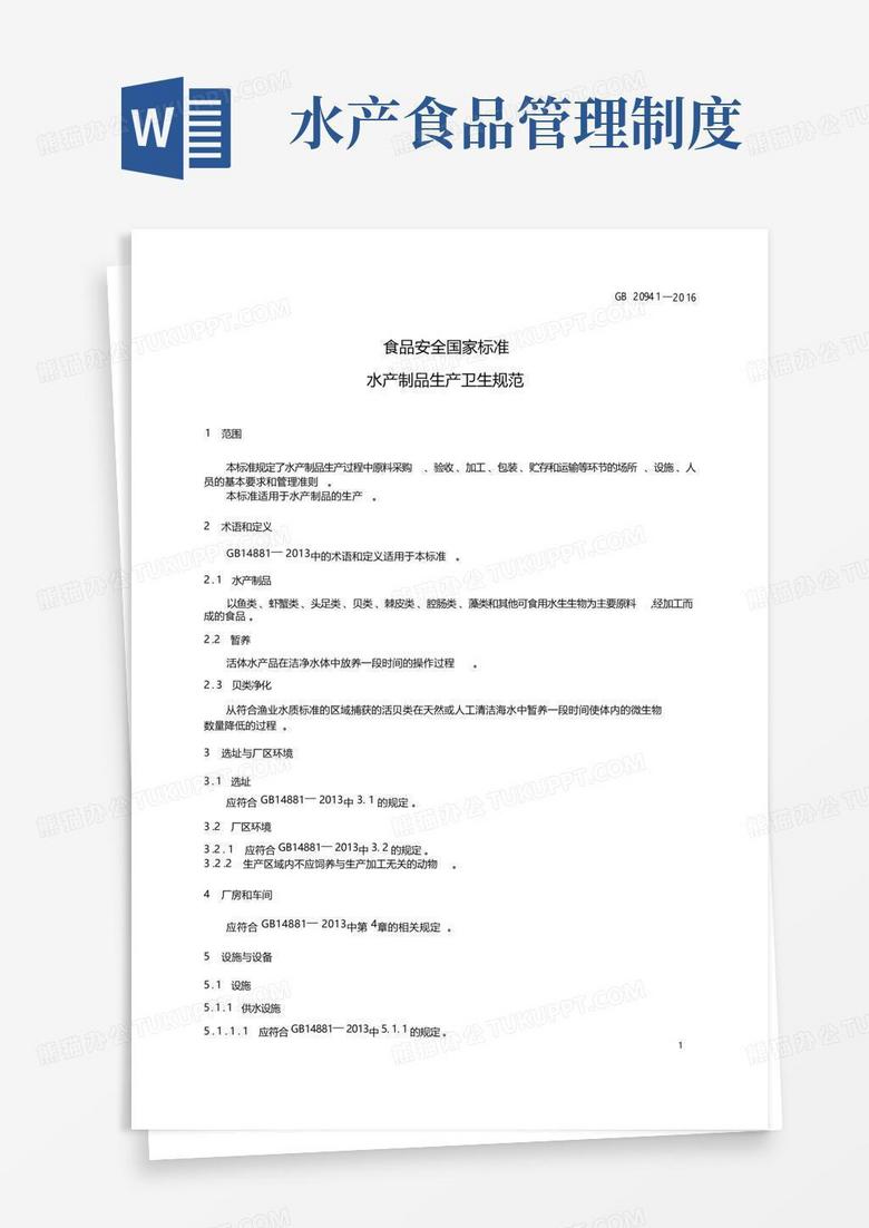 水产制品生产卫生规范(食品安全国家标准)Word模板下载_编号qjdmdrxq_熊猫办公