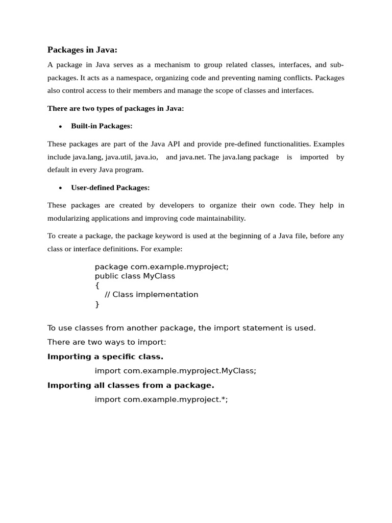 Java Packages: Key Concepts and Usage Explained (JAVA Notes) - Studocu