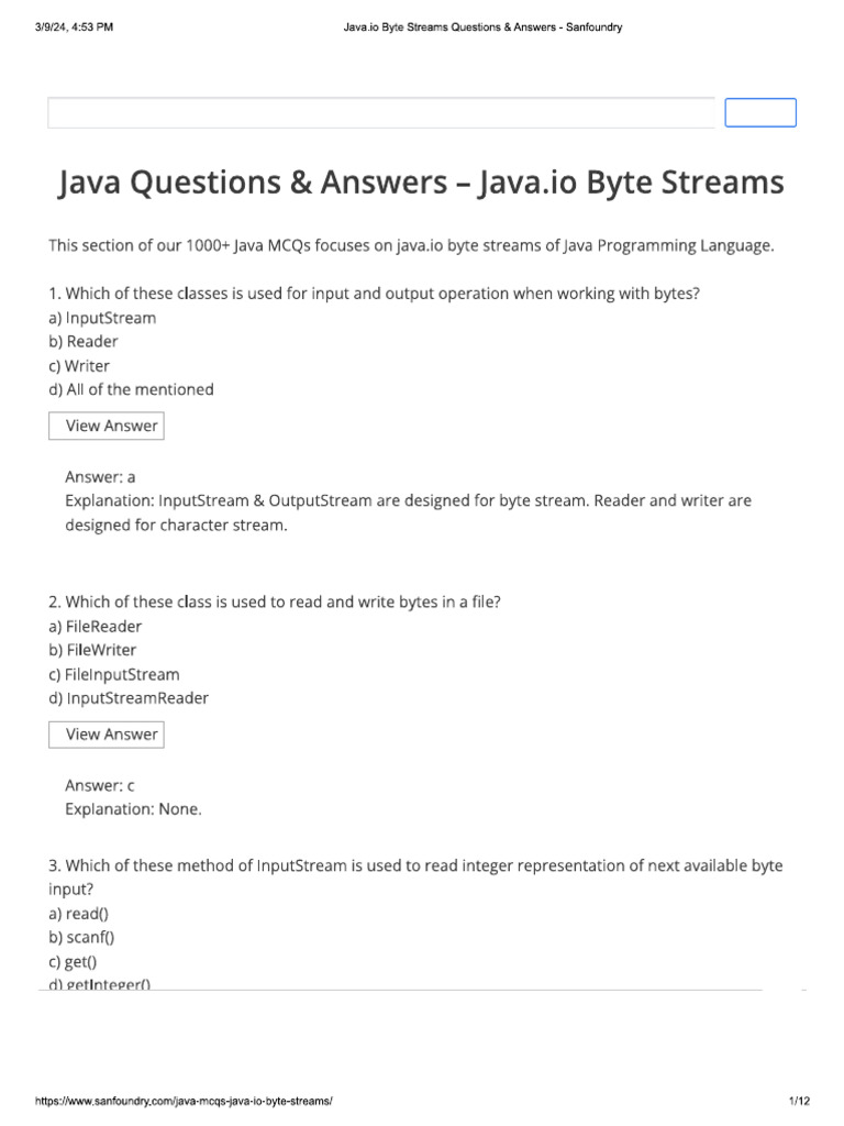 Java - Io Byte Streams Questions & Answers - Sanfoundry | PDF