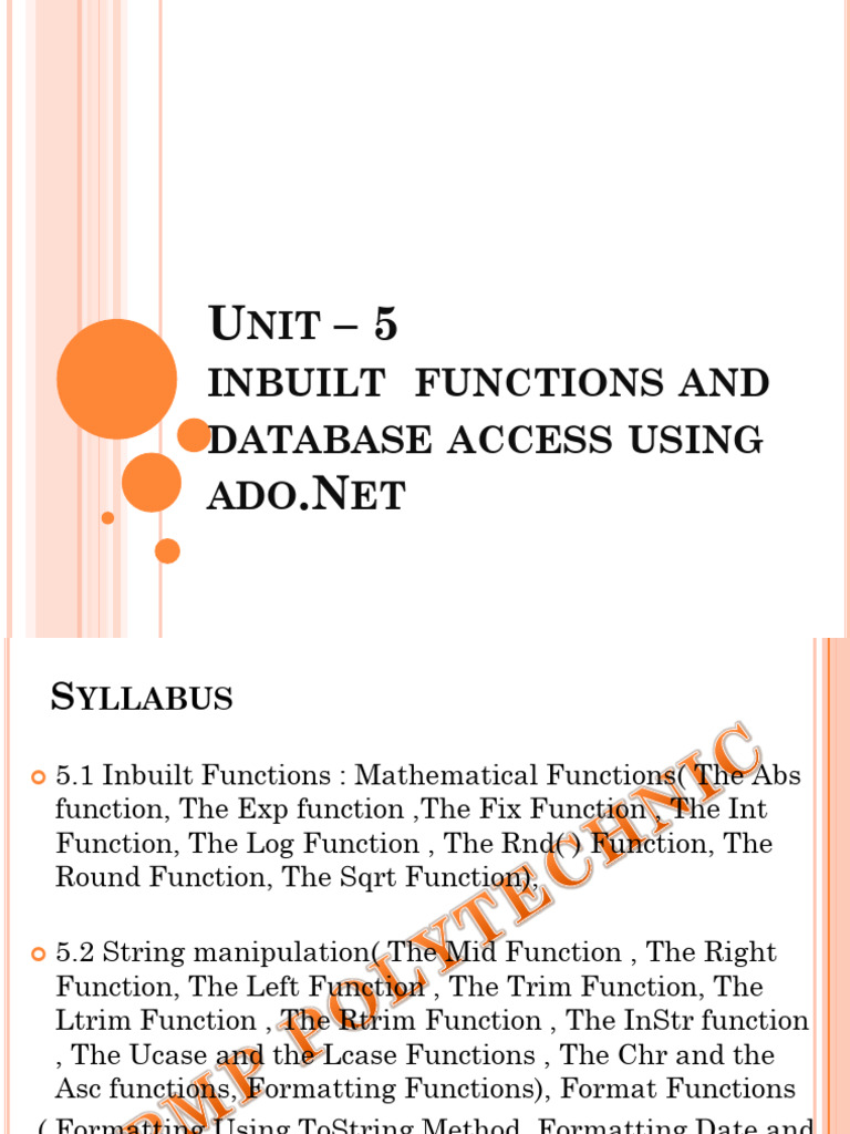 NIT Inbuilt Functions and Database Access Using ADO ET | PDF | Active X ...