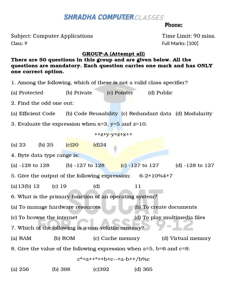 Class 9 Question Paper New | PDF | Java (Programming Language) | Class ...