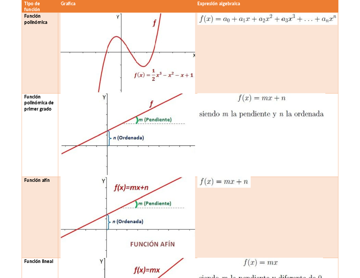 Tipos DE Funciones - Resumen Matemáticas 1 - Tipo de función Grafica ...