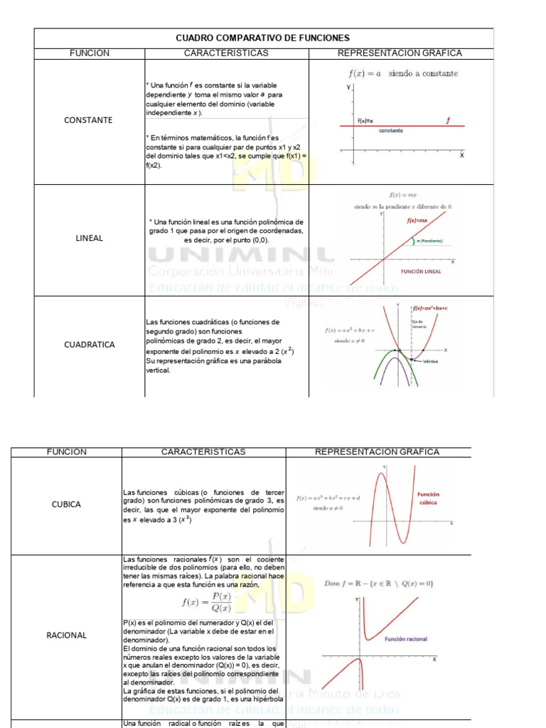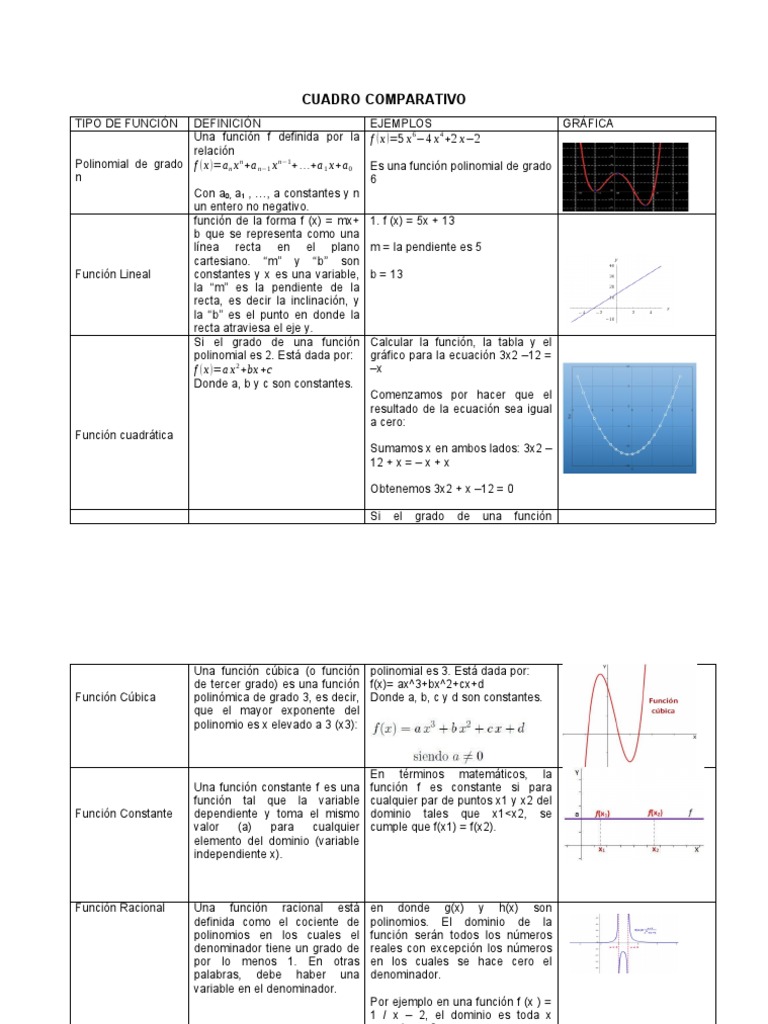 TIPO DE Funciones Matematicas - CUADRO COMPARATIVO DE TIPO DE FUNCIONES ...