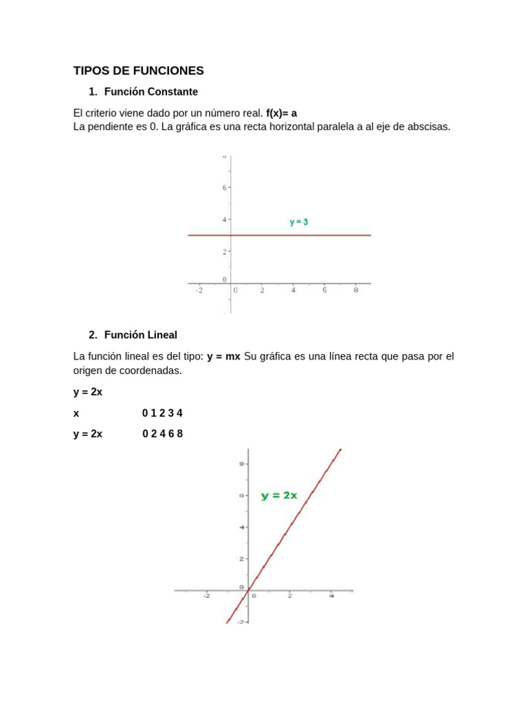 Tipos de Funciones Matemáticas | PDF | Función (Matemáticas) | Línea ...