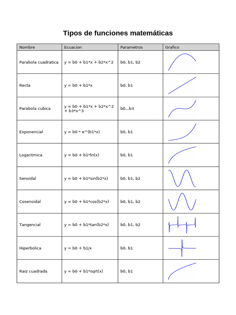 Tipos de funciones matemáticas y gráficos | PDF | Función (Matemáticas ...