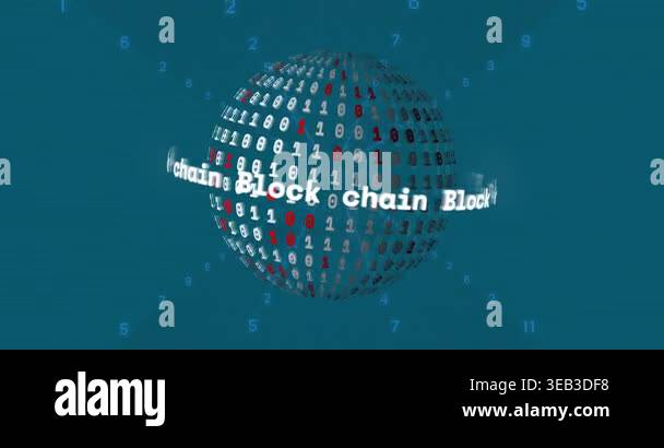 Animation of binary coding over globe with block chain texts ...