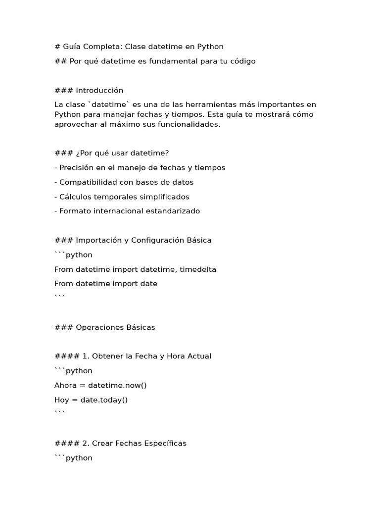 Guía de uso de datetime en Python | PDF | Python (lenguaje de ...