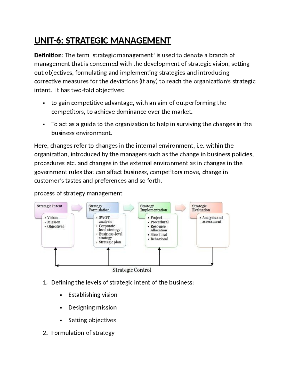 Strategic Management Overview: Key Concepts and Applications (UNIT 6 ...