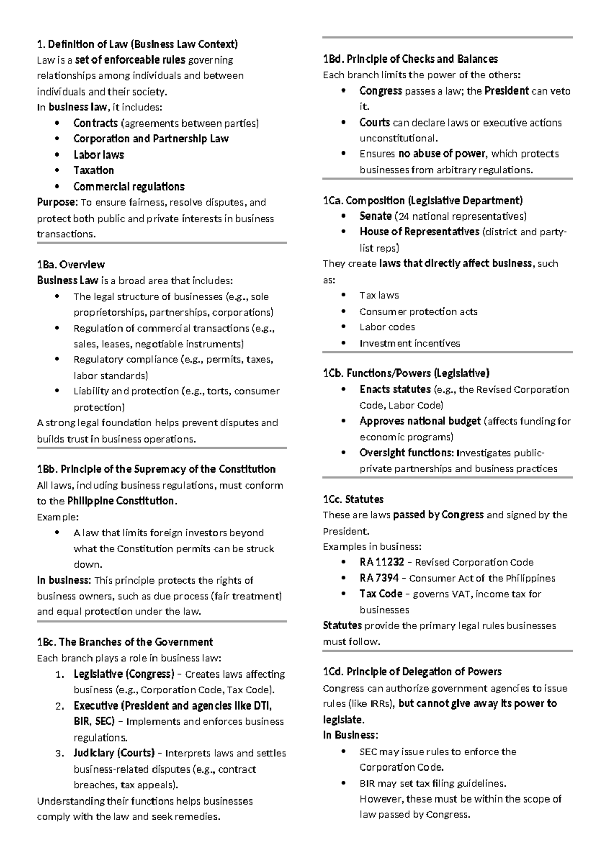 Business Law Overview: Key Concepts and Principles (1Ba) - Studocu
