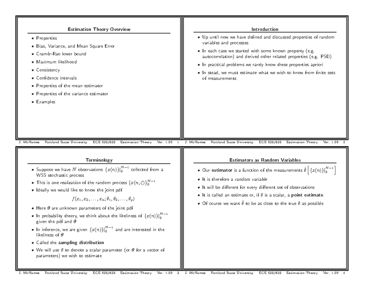 Estimation Theory Overview: Key Concepts and Properties (ECE 4) - Studocu