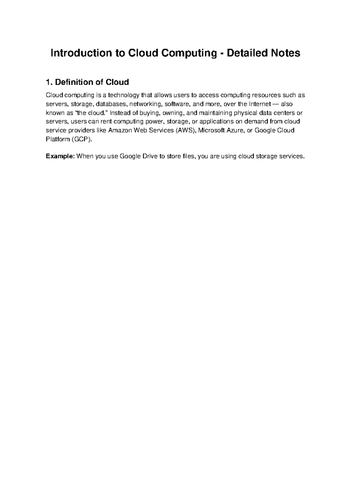 Cloud Computing Overview: Key Concepts and Evolution Notes - Studocu
