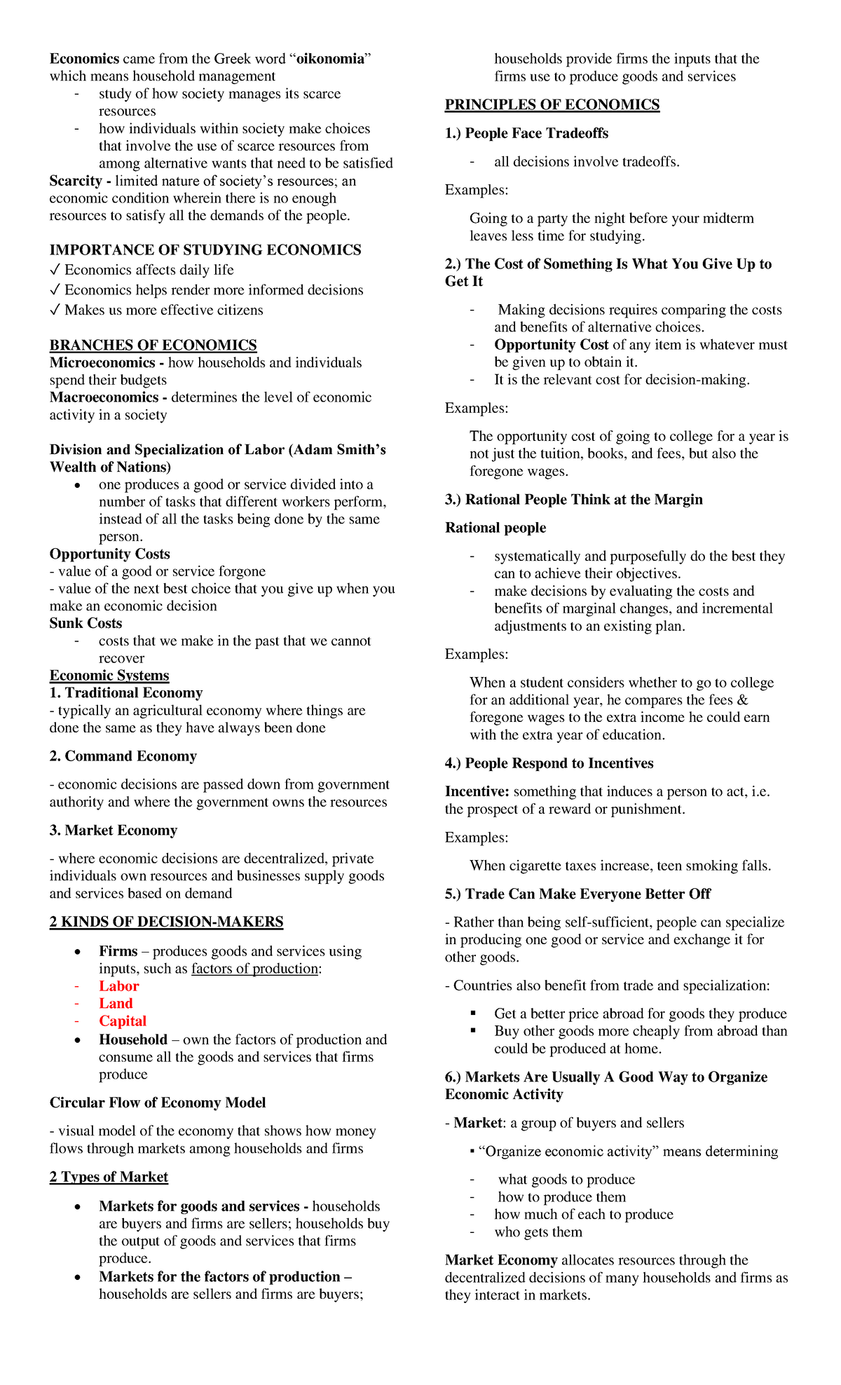 Economics Overview: Key Concepts and Principles - ECO 101 - Studocu