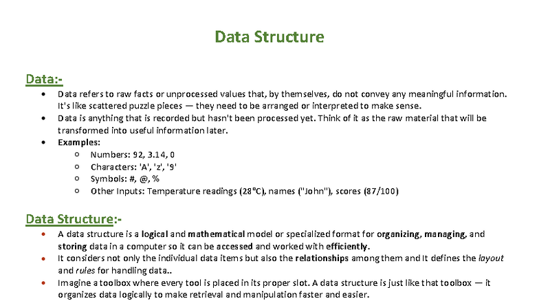 Data Structure Overview: Key Concepts and Characteristics - Studocu