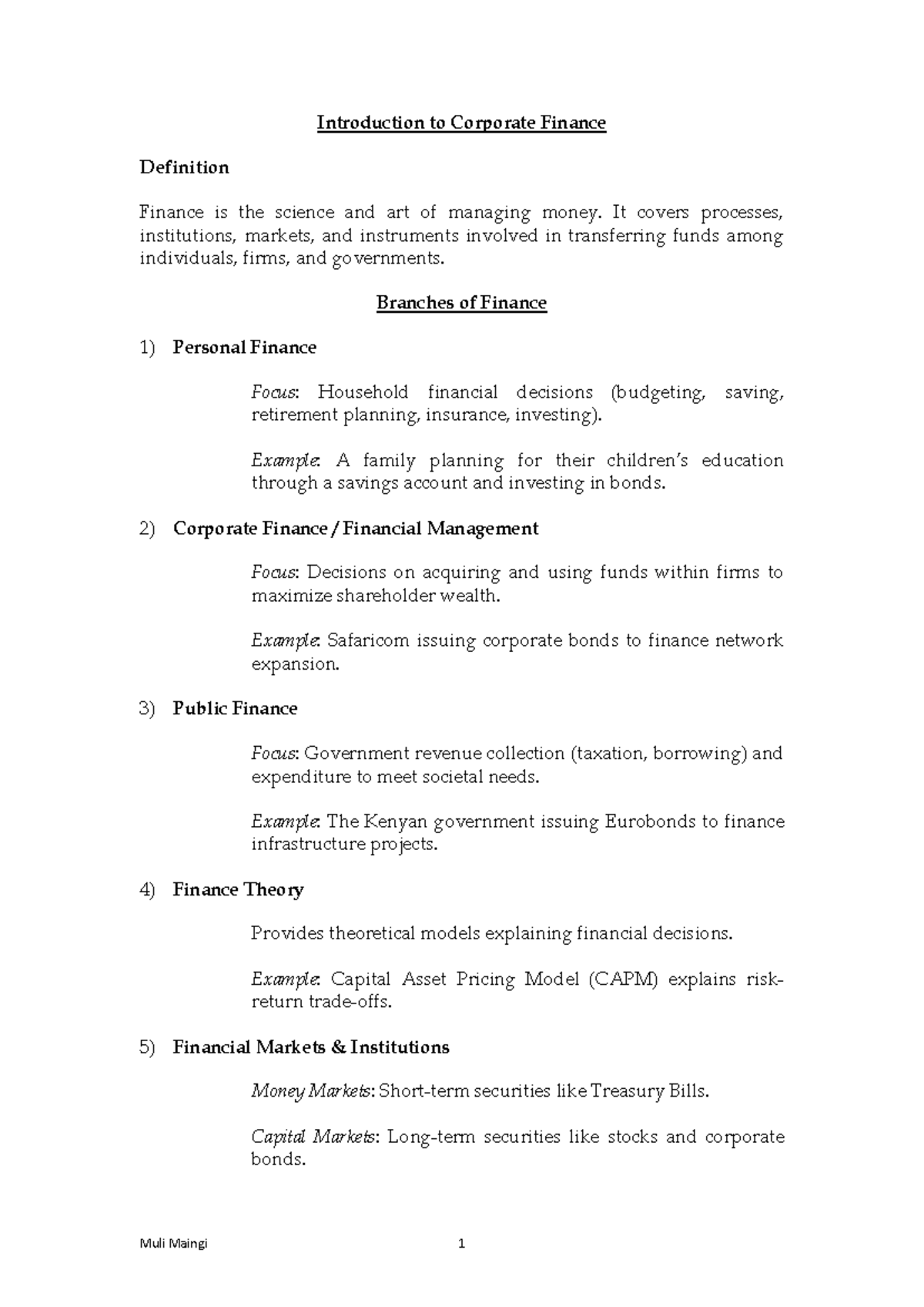 Corporate Finance Overview: Key Concepts and Branches - Studocu
