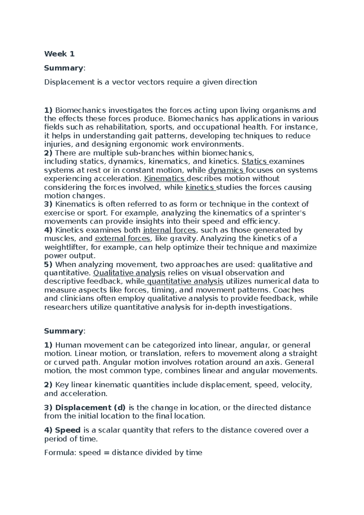 Biomechanics Study Notes Summary: Key Concepts and Applications - Studocu