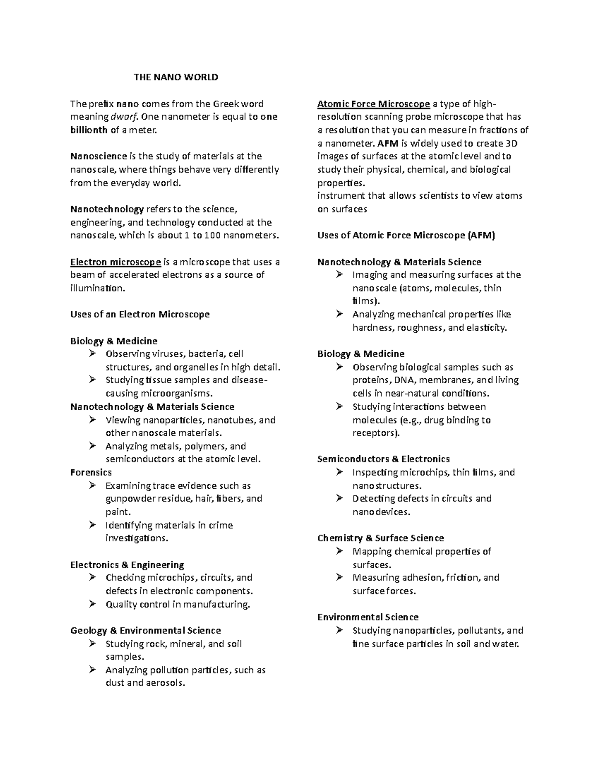 Nanotechnology Overview: Key Concepts and Applications - Studocu