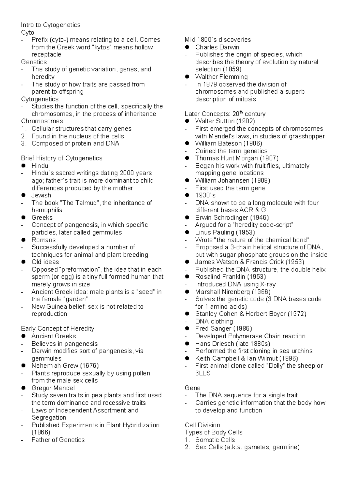 Cytogenetics Overview: Key Concepts and Historical Insights - Studocu