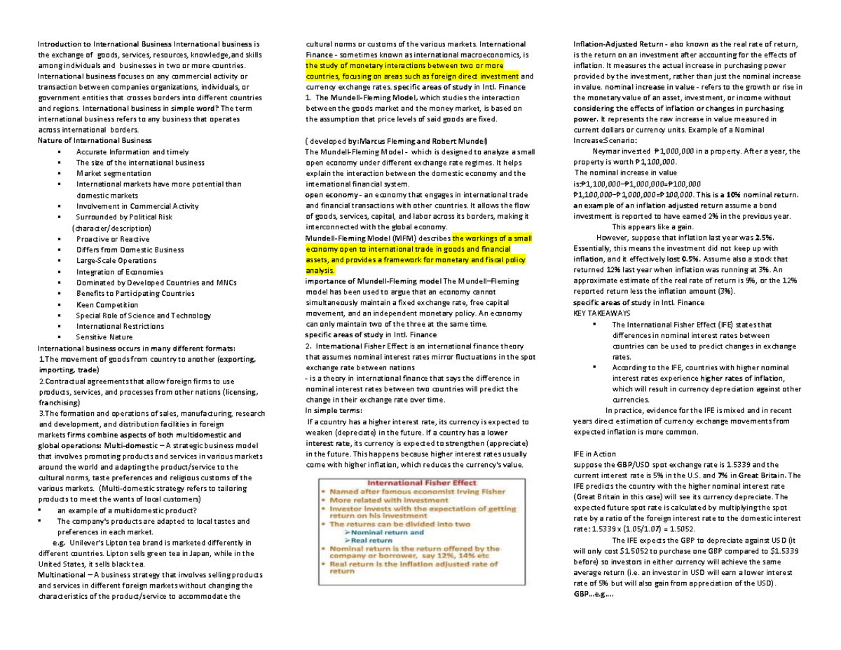 International Business Overview: Key Concepts and Models (IB 101) - Studocu