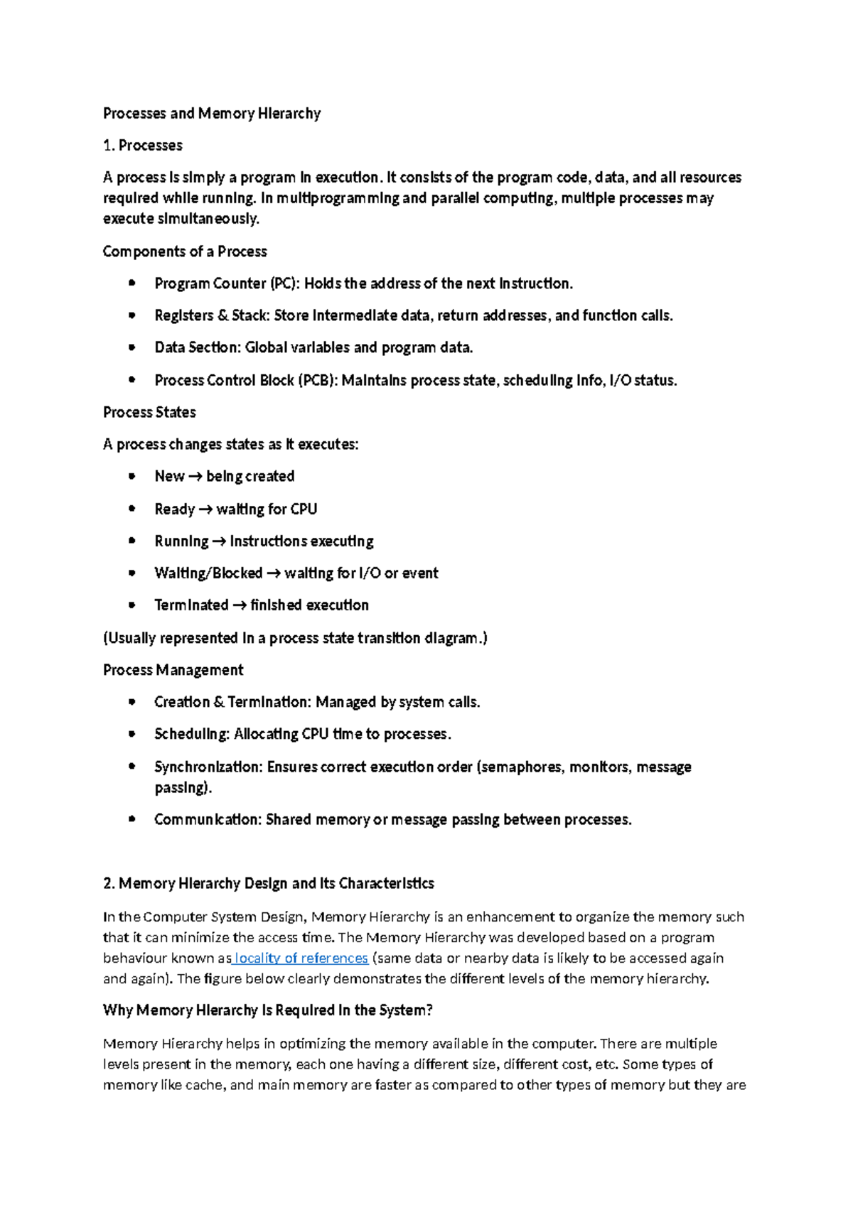 Processes and Memory Hierarchy Overview: Key Concepts and Design - Studocu