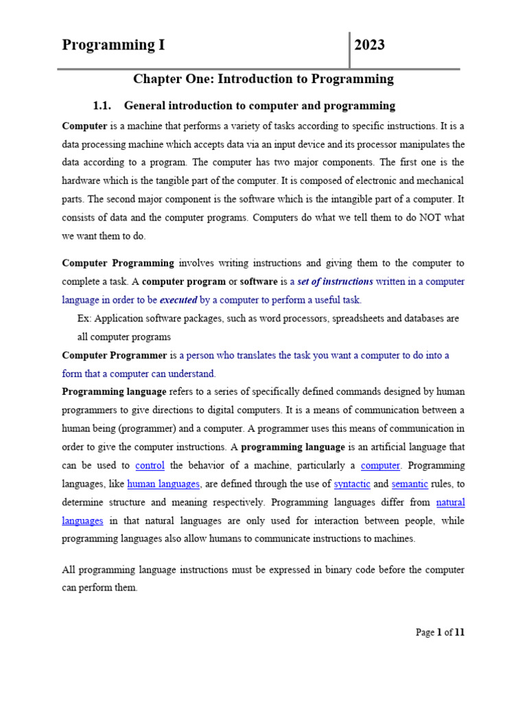 Updated Chapter One - Introduction | PDF | Computer Program | Programming