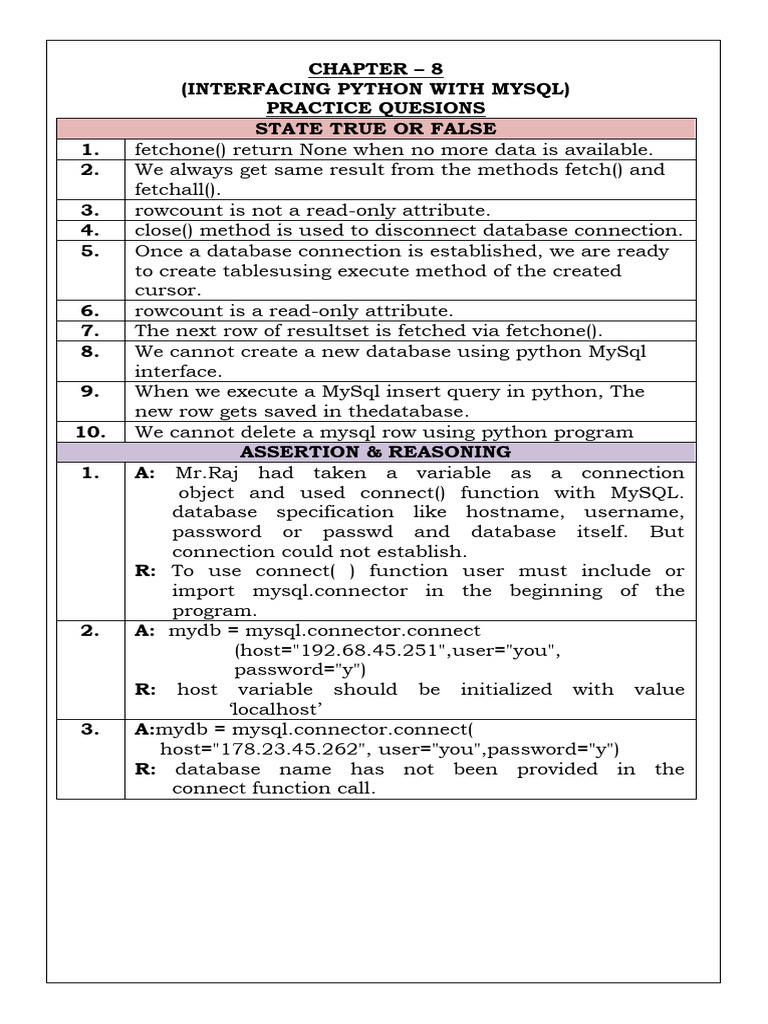 Based on this image's title: “Interfacing Python To Mysql | PDF | My Sql | Databases