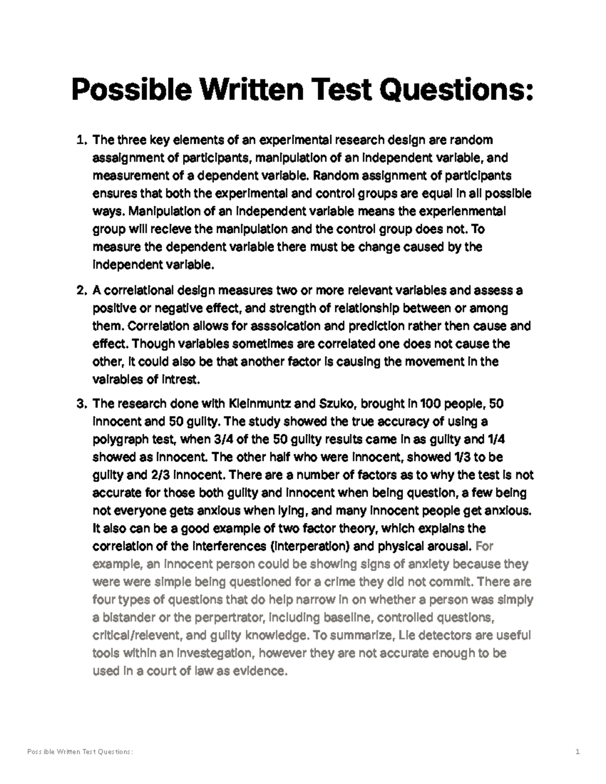 Psychology Intro: Possible Practice Questions for Exam Prep - Studocu