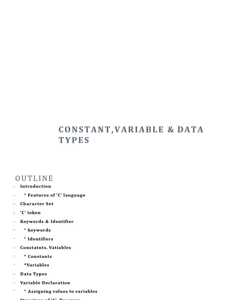 Constant, variables, data types | PPTX | Programming Languages | Computing