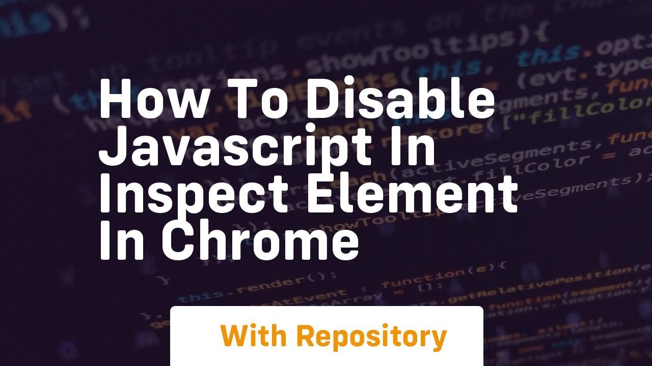 How to Disable JavaScript in Inspect Element in Chrome? - YouTube