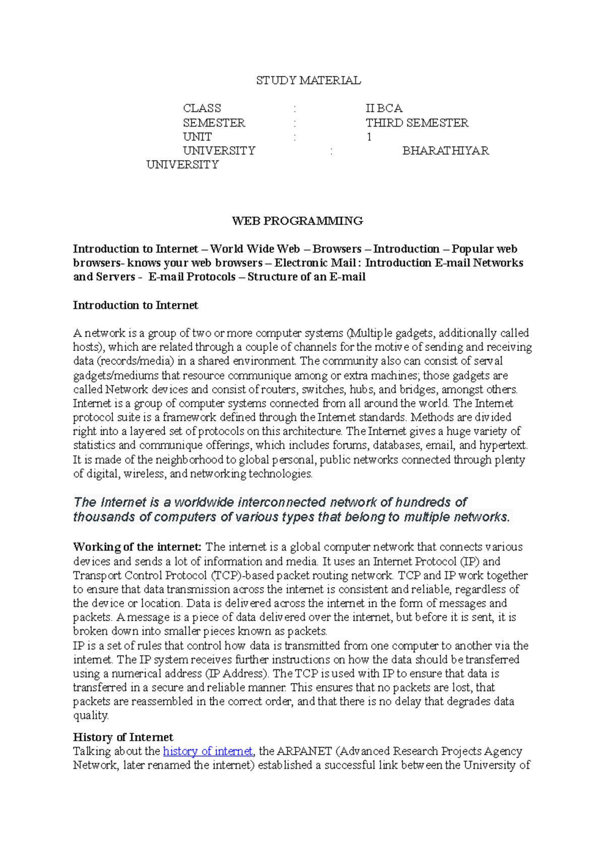 WEB PROGRAMMING II BCA SEM III: UNIT 1 STUDY NOTES & INTRODUCTION - Studocu
