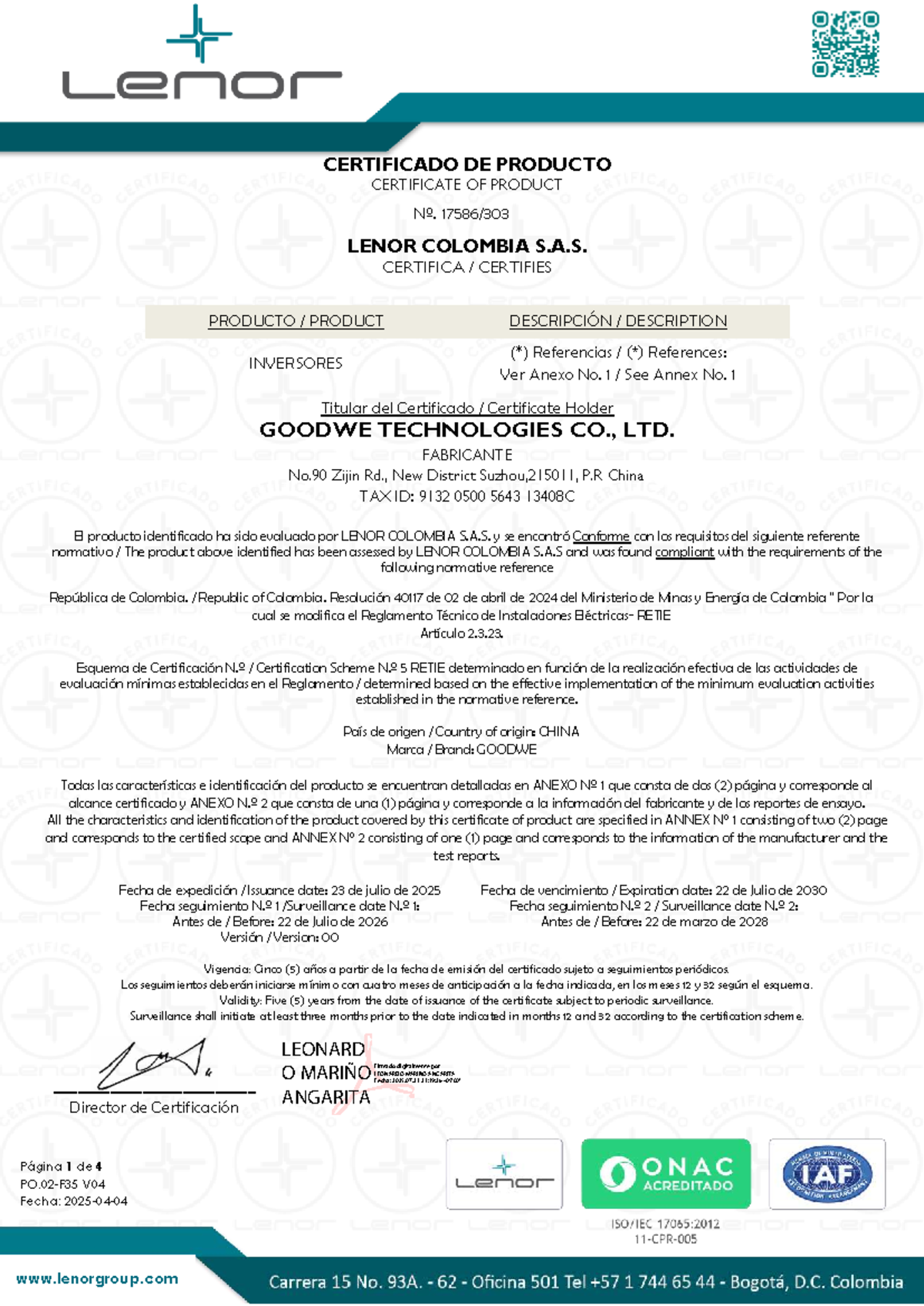 Certificado de Producto N.º 17586/303 - Inversores Goodwe - Studocu