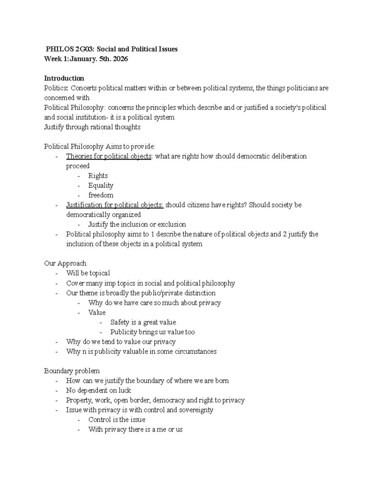 PHILOS 2G03: Social and Political Issues - Week 1 to Week 6 Overview ...
