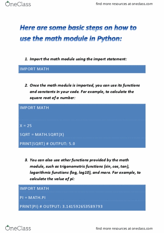 ECODING PY1 : Here are some basic steps on how to use the math module ...