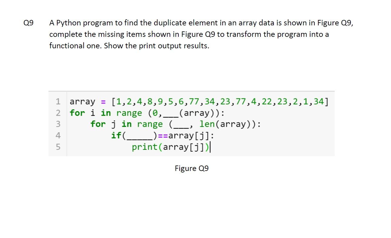 Solved A Python program to find the duplicate element in an | Chegg.com