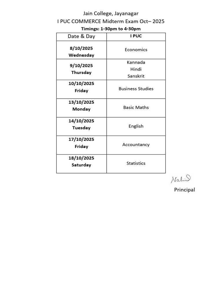I Puc and Cbse+1 Pre-Finals - 2020-21 Time Table and Syllabus Details ...