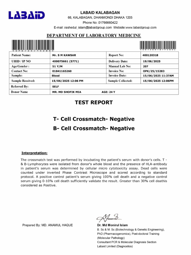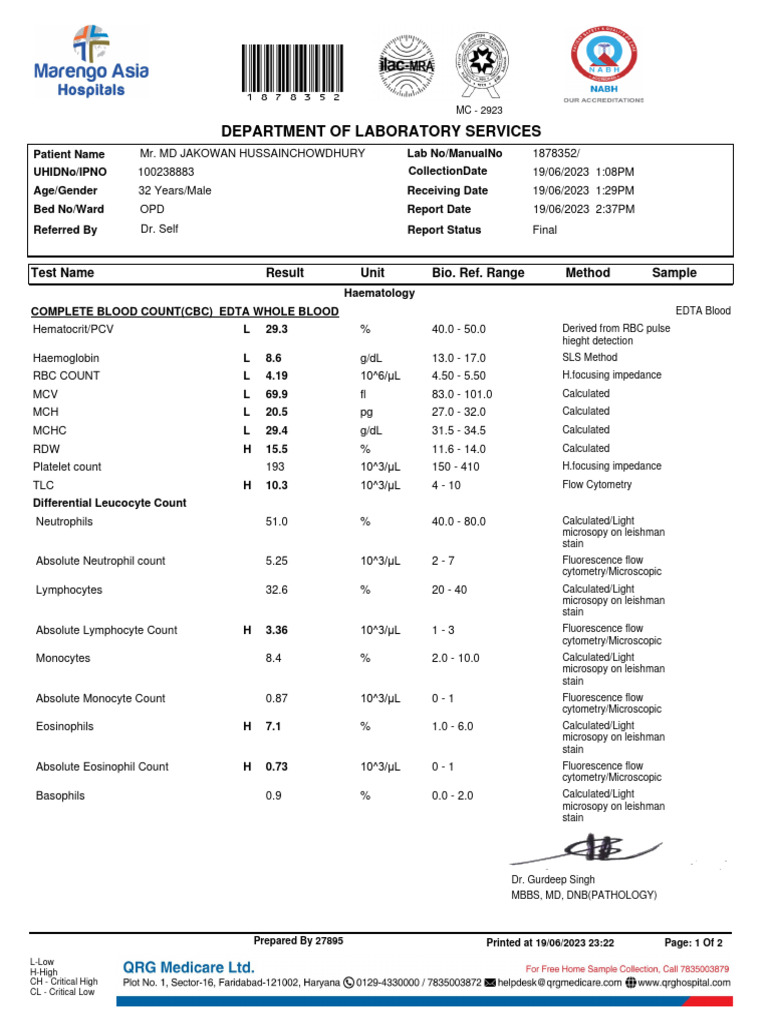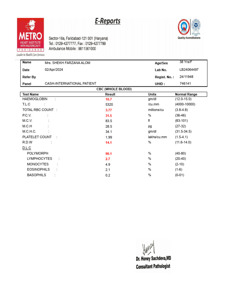 CBC Report for Patient Analysis | PDF | Blood | Clinical Medicine