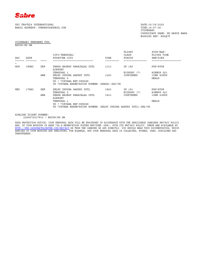 Dhaka to Delhi Flight Itinerary | PDF | Transport | Civil Aviation